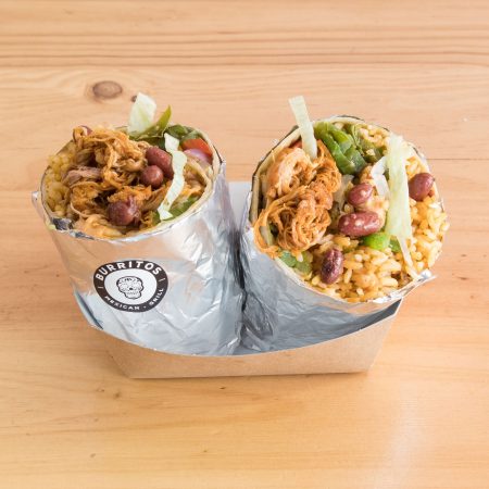 BURRITO BARCELONA / Burrito Barcelona $10.00Pollo, carnitas (pulled pork), arroz, vegetales, frijoles negros, salsa verde, salsa chipotle (medio picante), pico…Add to cart